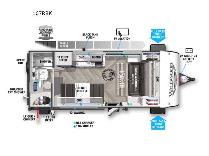 Forest River Wildwood FSX travel trailer 167RBK highlights: Murphy Bed Rear ... more about Wildwood FSX 167RBK