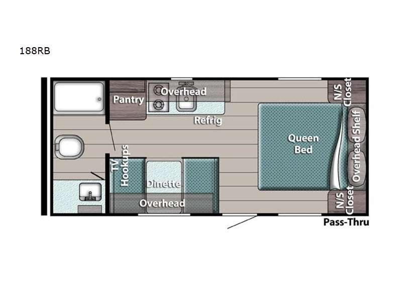 Sleeps 4 Length 18 ft 10 in Ext Width 7 ft Ext Height 10 ft 1 in Int Height 6 ft 8 in Interior Color Silver, Graphite Hitch Weight 360 lbs Dry Weight 2612 lbs Cargo Weight 1268 lbs Fresh Water Capacity 30 gals Grey Water Capacity 36 gals Black Water Capacity 36 gals Furnace BTU 16000 btu Number Of Bunks 2 Refrigerator Type Electric Cooktop Burners 2 Number of Awnings 1 LP Tank Capacity 20 lbs Water Heater Capacity 6 gal Water Heater Type Gas DSI AC BTU 13500 btu Awning Info Power Axle Count 1 Number of LP Tanks 1 Shower Type Tub/Shower Combo Electrical Service 30 amp Similar Floorplans