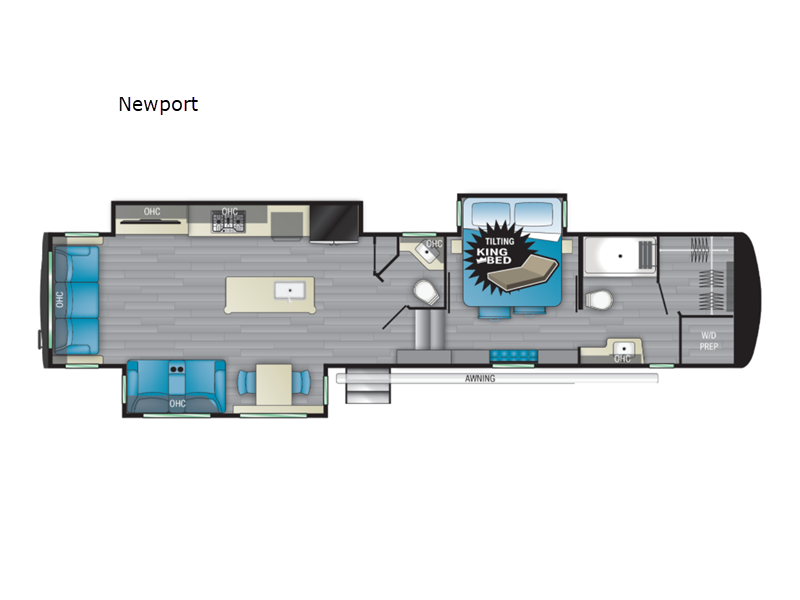 Hearland Landmark fifth wheel Newport highlights: Opposing Slides Bath and a ... more about Landmark Newport